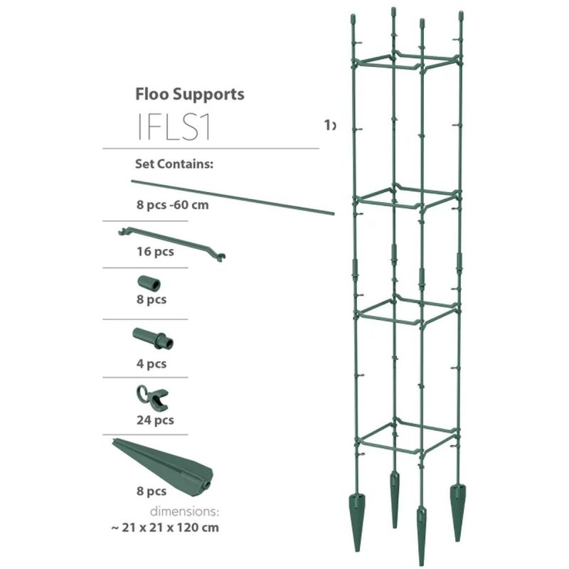 The FLOO SUPPORTS 21x21x120CM FOREST GREEN PLANT SUPPORT is a versatile set that allows you to create several different structures for climbing plants. Its aesthetic design, durable material, and easy assembly make it the perfect solution for any garden!