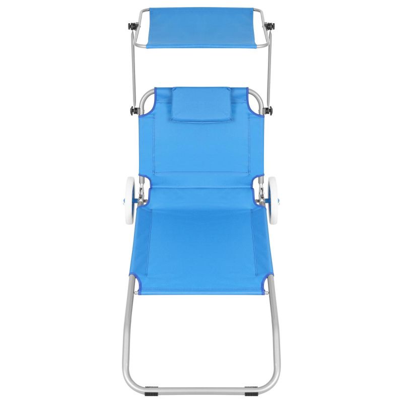 FOLDABLE BEACH CHAIR WITH CANOPY ON WHEELS 116x62x60-90CM BLUE