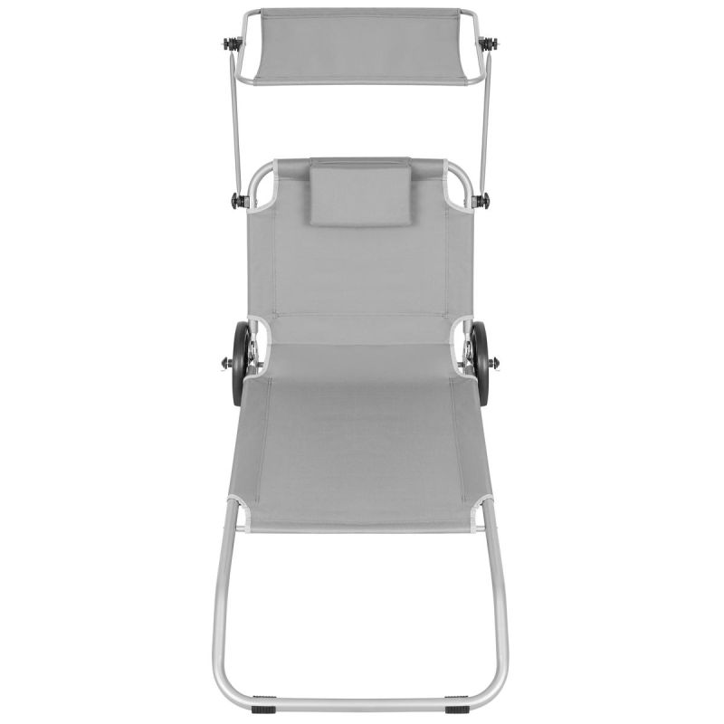 Planning some sweet laziness on the beach by the lake, in the garden, on the terrace, or on the balcony? Enjoy your relaxation on the lightweight and comfortable FOLDABLE BEACH SUN CHAIR WITH CANOPY ON WHEELS 116x62x62-90CM GRAY!