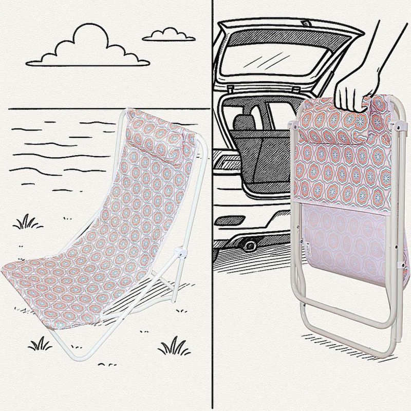 A folding deck chair is a practical solution for those looking to relax, for example, on the beach, providing protection from the sun. This type of deck chair is easy to fold and transport, making it the perfect companion for vacation travel.