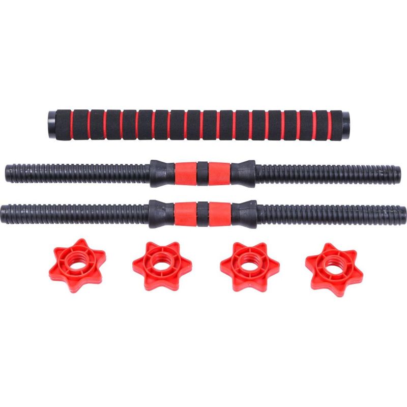 - Set composition: 16 weights weighing 2.5 kg, two connectors (56 cm and 40 cm), two dumbbell bars (50.5 cm), clamps (nuts) - 4 pcs.