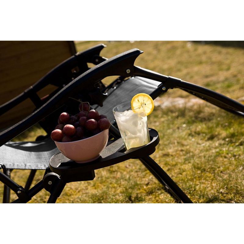 The soft headrest allows you to comfortably rest your head and find a comfortable position while lying down. The adjustable canopy provides pleasant shade or access to full sun, the side pocket provides constant access to a newspaper or favorite book, and the table allows you to place a cup of coffee, juice, or your phone. The chair's frame is made of solid and durable steel tubing and can support up to 120 kg!
