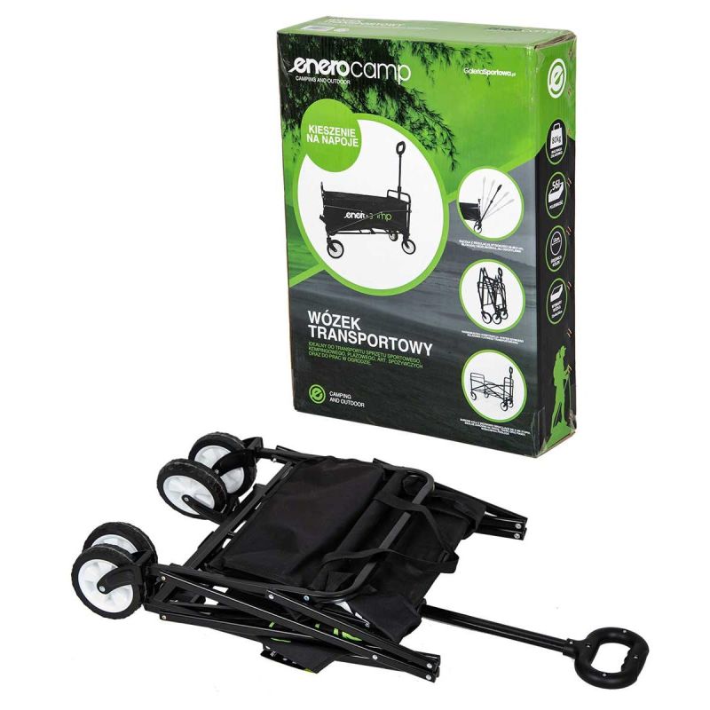 The 72 x 44 x 50 cm FOLDABLE TRAVEL AND BEACH STROLLER WITH HANDLE is a versatile and highly practical solution for everyday use. It's a dream come true for every mom heading to the beach, playground, or picnic with her children. You can pack an umbrella, blankets, towels, food, drinks, toys, and much more. For gardeners, it can be used to carry various garden tools essential for gardening. Thanks to the strong steel frame and reinforced bottom, the maximum load capacity is 40 kg. The entire structure is lightweight, handy, and easy to use. Using the stroller is very easy and enjoyable, and most importantly, children can help you with it, thanks to the adjustable handle height, making it a fun experience. Rubber, non-inflatable tires with tread and 360° front wheels allow you to tackle any terrain, whether it's a beach, forest, or meadow, even with a full load. The biggest advantage of this stroller is that it can be folded down to a compact size, making it much easier to transport. You can take it with you practically anywhere. This foldable stroller will be your faithful friend. See for yourself.