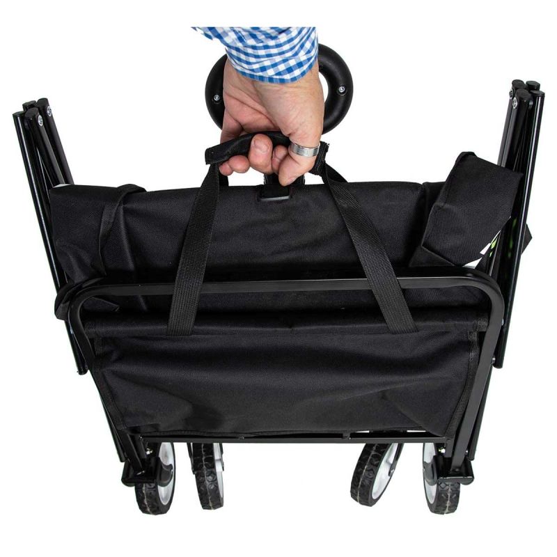 Looking for a handy, lightweight, foldable stroller to conveniently transport various items to the beach, lake for a picnic, or playground? The 72 x 44 x 50 cm FOLDABLE TRAVEL AND BEACH STROLLER WITH HANDLE means you'll no longer have to lug umbrellas, blankets, drinks or food, and various toys to the water. You can now conveniently transport them in one stroller!