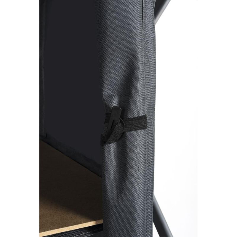 The steel construction allows it to be quickly set up and folded without the use of any tools, which is very convenient when traveling.