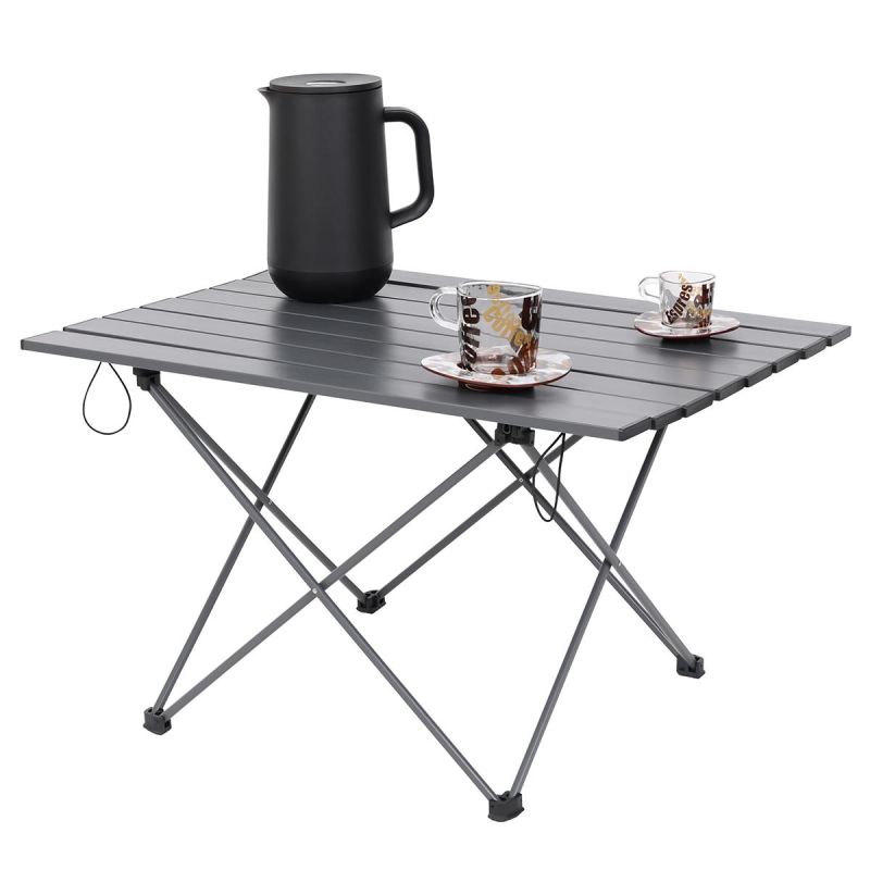 When folded, the table takes up little space and is easy to transport and store when packed into the included waterproof cover with a drawstring.