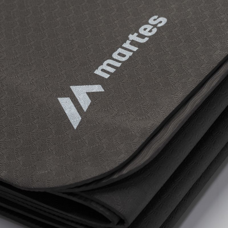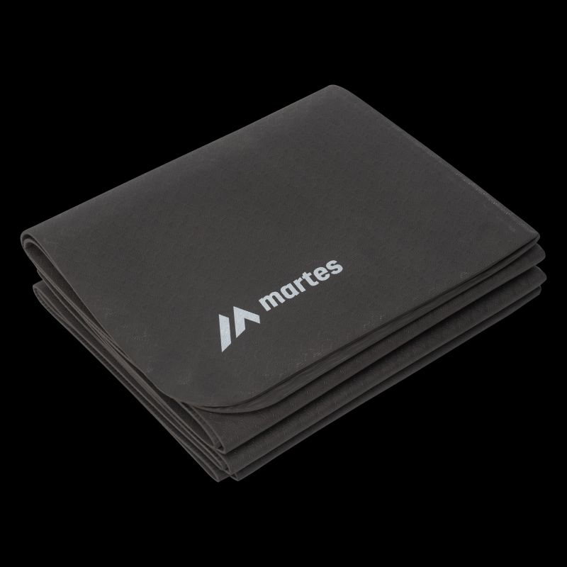 EXERCISE MAT DIMENSIONS: 183 x 61 x 0.3 cm WEIGHT: 350 g ± 10 g MATERIAL COMPOSITION: TPE, EVA FOAM, PE, BARIUM SULFATE SPECIFICATIONS: - FOLDABLE