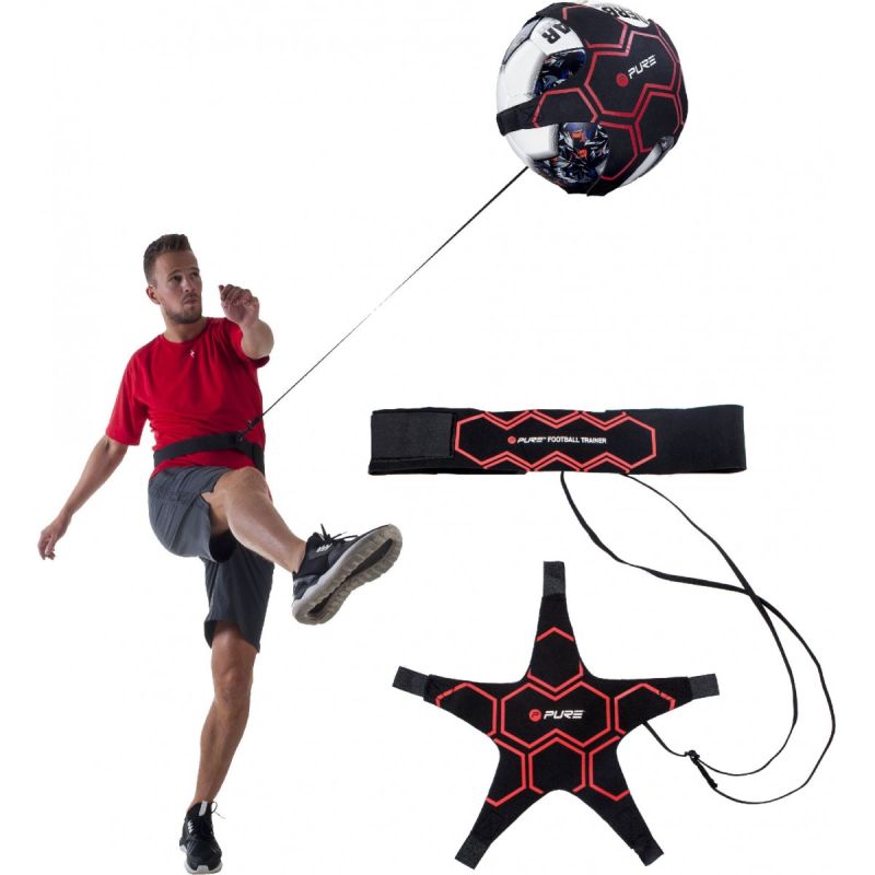 The BLACK/RED PURE 2 IMPROVE RUBBER FOOTBALL TRAINER is an innovative training tool that allows you to improve your passing, receiving, and ball control techniques. Thanks to the flexible rubber, the ball always returns to the player, allowing for intense and effective training without the need for a partner.
