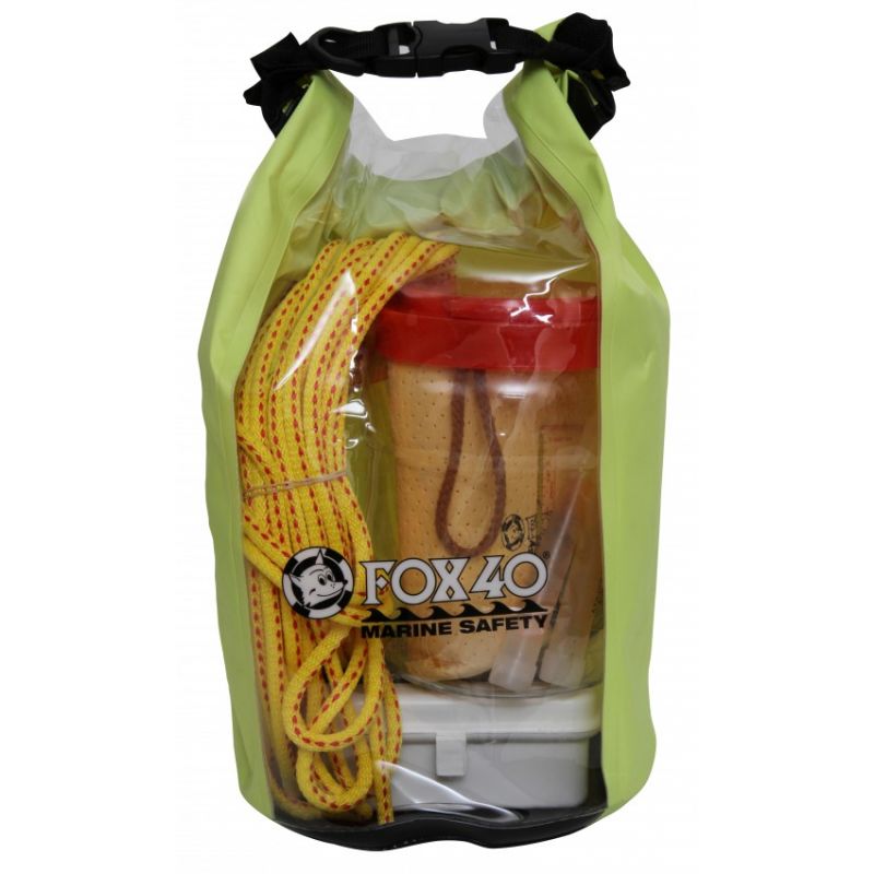A rescue kit – perfect for your kayak or small boat. This rescue kit is perfect for kayaks or small boats. This rescue kit contains all the essential first aid supplies in a compact package. All the kit components fit in the bag. All the rescue kit items have been hand-selected by professionals. These are all the rescue supplies you need on board a kayak or small boat. The kit includes: a waterproof bag, 15 m of FOX40 Marine polypropylene rope, a waterproof scoop/can, two glow sticks, a compass, an LED light, a FOX40 micro whistle, a Fox40 micro rescue kit, and a sponge for scooping water from the kayak.