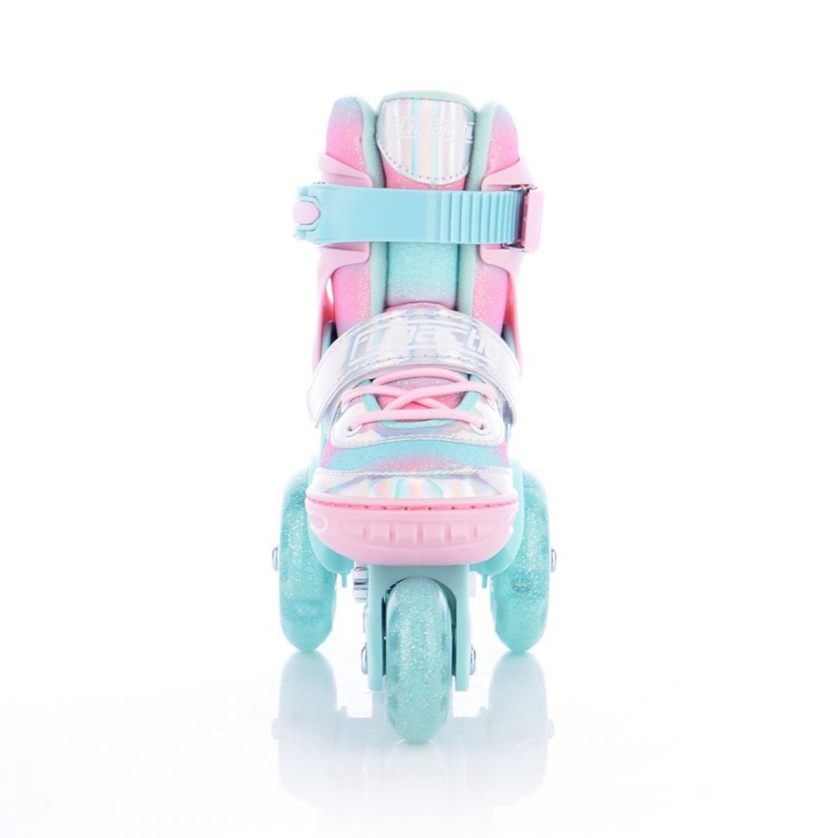 FunActiv Twixer Girl Adjustable Roller Skates. Discover the perfect first choice for kids learning to roller skate! This beginner-friendly model provides maximum stability and safety as they take their first steps on wheels, allowing for a smooth transition to classic inline skates.
