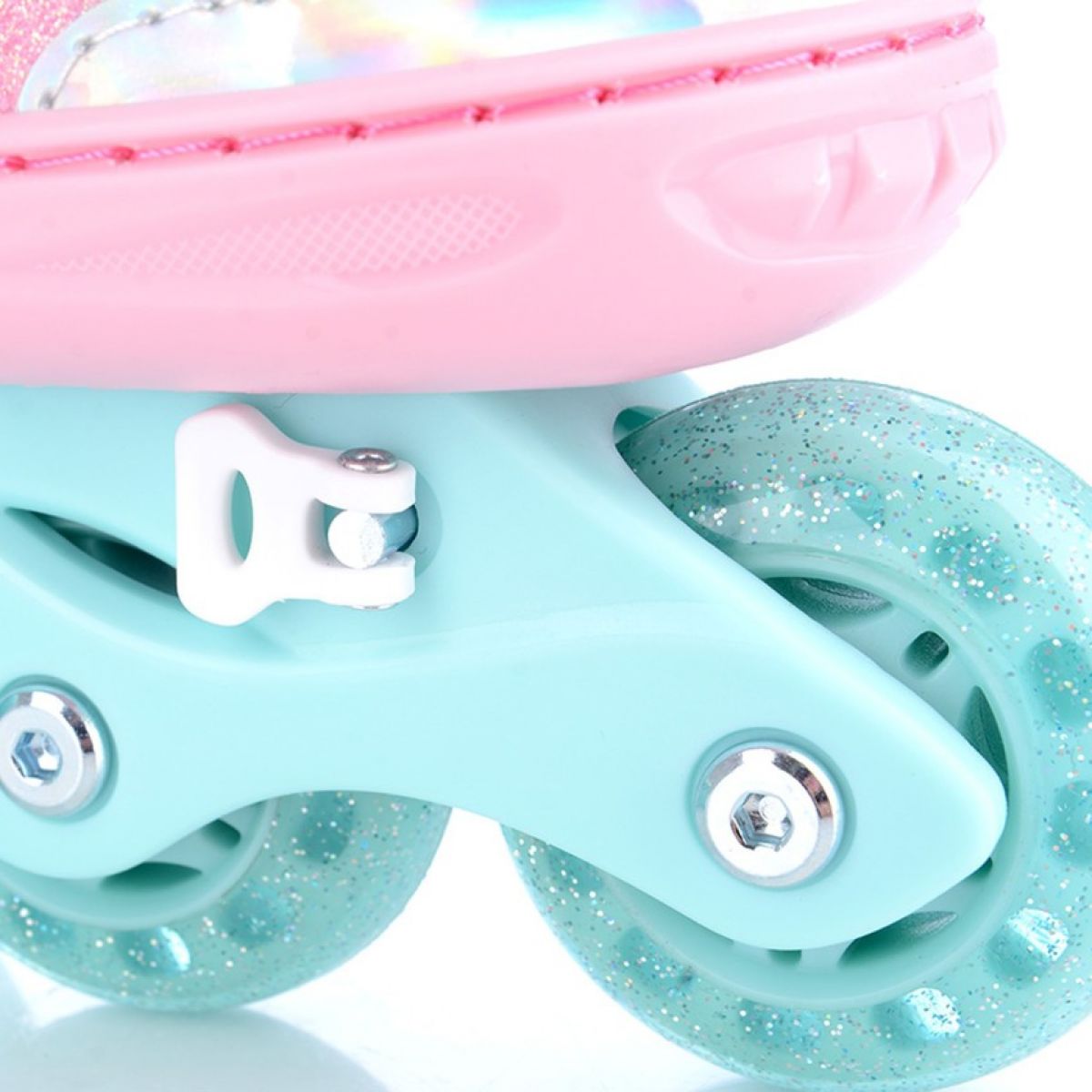 LED Rear Wheels: Colorful lights activate while skating, providing even more fun and safety. No batteries required! High-quality ABEC-7 bearings: Ensure smooth, efficient rolling with minimal resistance. Two Size Ranges: Available in EU sizes 26–30 and 31–35, with easy adjustments so the skates grow with your child's feet.