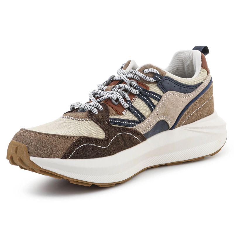 The upper is made of synthetic and textile materials, ensuring durability, lightness, and comfort. The shoe's construction supports the foot while walking, and the classic lacing allows for a personalized fit and stability.