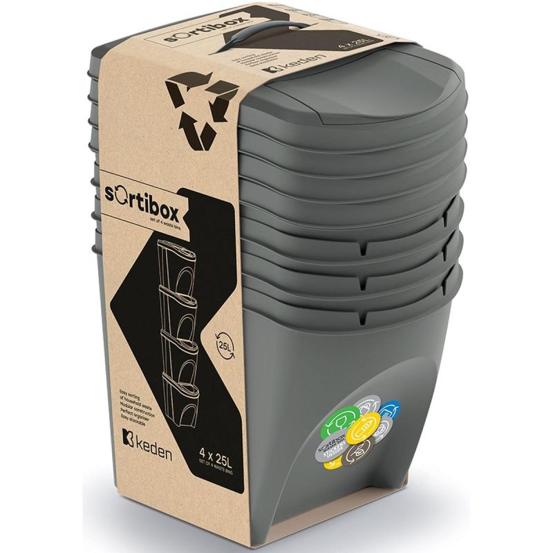 Need something versatile for throwing away and sorting waste? The 25L 4-Piece Sortibox Set, Stone Gray, is perfect for this task!