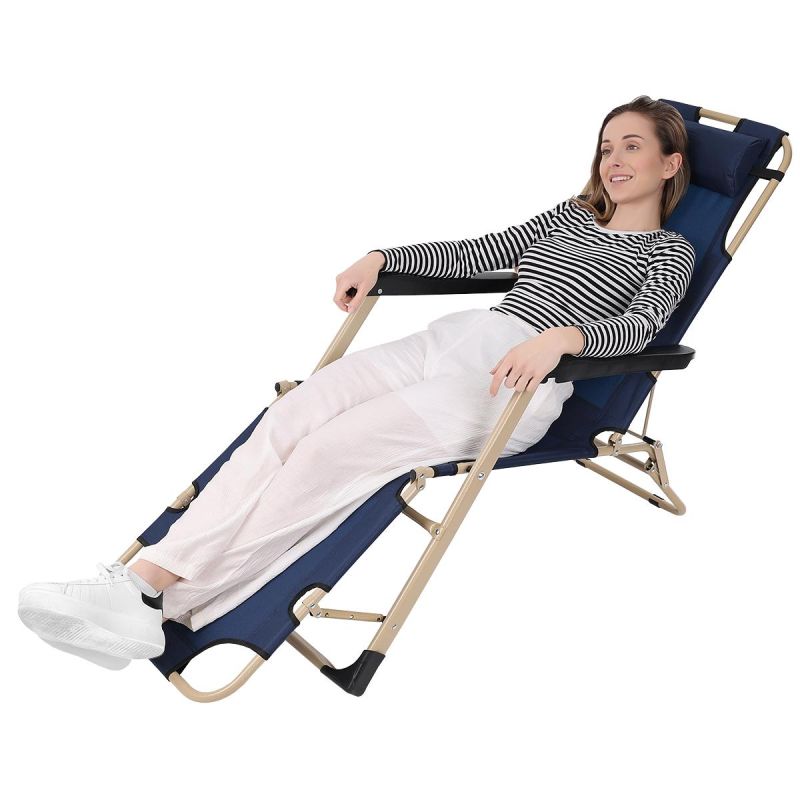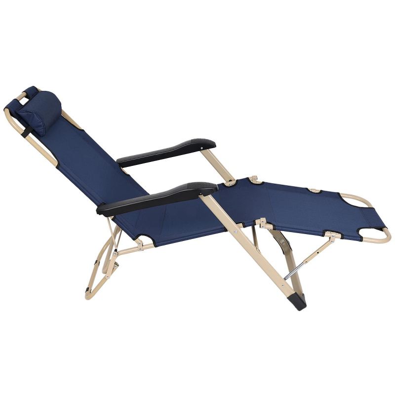 There's nothing better than a moment of relaxation in a comfortable lounger on a warm, sunny day. And the GARDA MULTIPLE-POSITION TRAVEL CHAIR WITH NAVY BLUE AND BEIGE HEADREST from Saska Garden will provide just such moments.