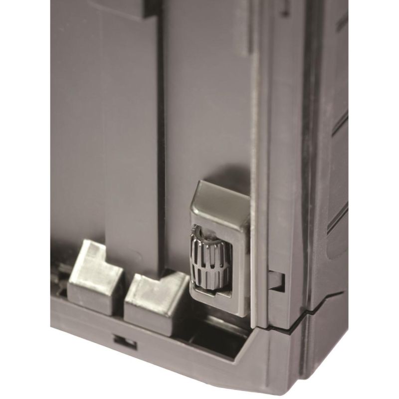 A simple yet robust opening mechanism allows for convenient and quick use of the box, while an additional padlock holder allows for secure locking of the contents.