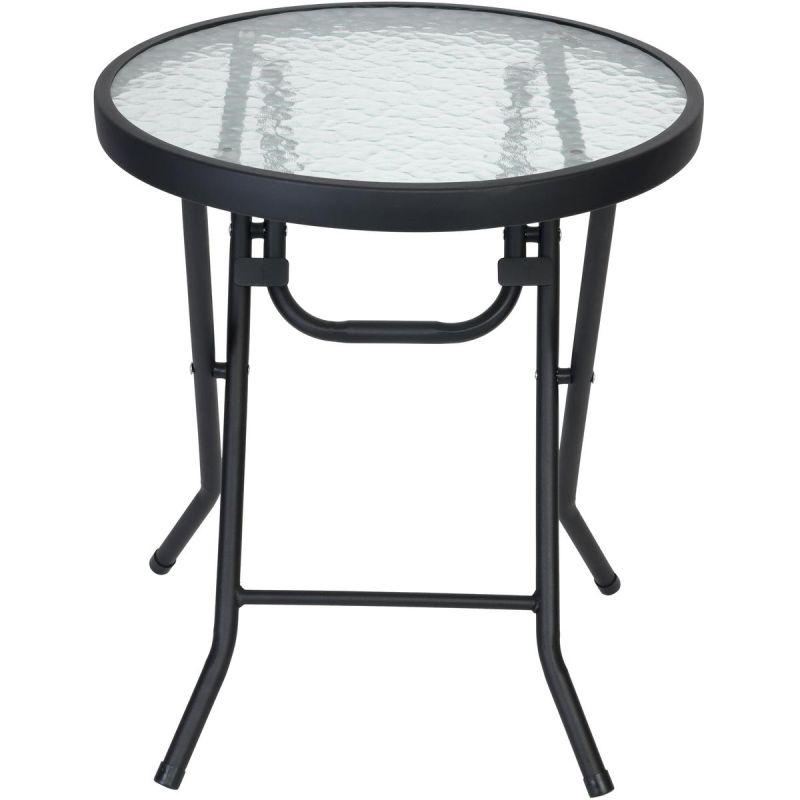 - Material: powder-coated steel - frames, table - tempered glass