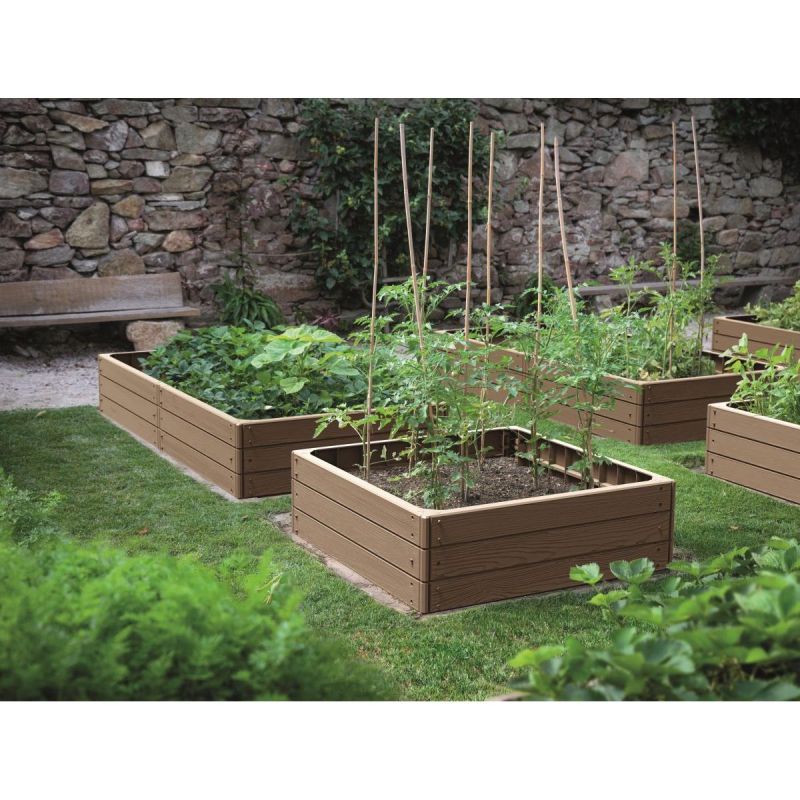 GARDEN FLOWER BED BASE WOOD EDGE 4 ELEMENTS RUSTIC BRICK is a practical garden bed that functions as a raised bed in an elegant and modern style.
