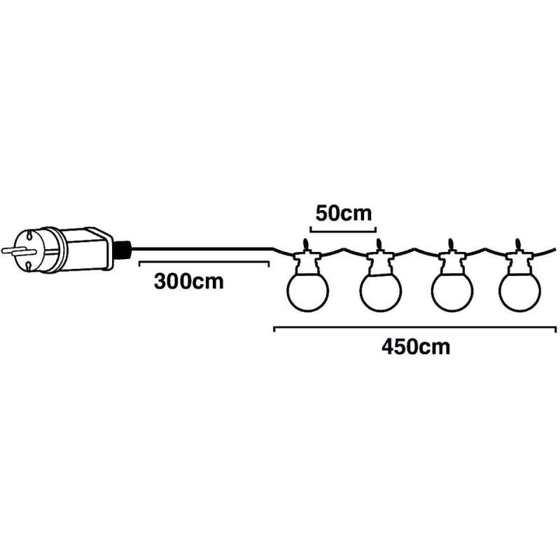 The garland's total length is approximately 7.5 meters, making it perfect for a variety of arrangements – you can hang it along a terrace, wrap it around a gazebo, attach it to a pergola, or string it between trees. The even 50 cm spacing between the bulbs ensures even lighting, giving the space a harmonious and elegant look.