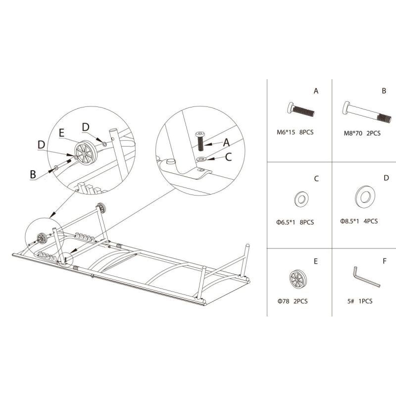 The powder-coated steel frame and 25 and 20 mm diameter tubes ensure durability and resistance to damage. Thick, durable tubes guarantee stability and safety of use, even with a maximum load of 110 kg. The structure is designed for long-term use in various weather conditions.