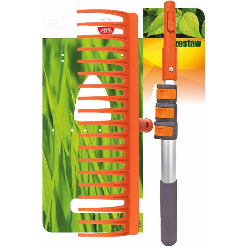 The PRO UNIVERSAL GARDEN RAKE SET WITH TELESCOPIC HANDLE combines convenience with professional quality. The rake allows you to quickly and thoroughly clear away leaves and small twigs, while the telescopic handle allows you to adjust the length to suit the user's height and the type of work. The KLIK system allows you to use a single handle for multiple tools, saving space and money.