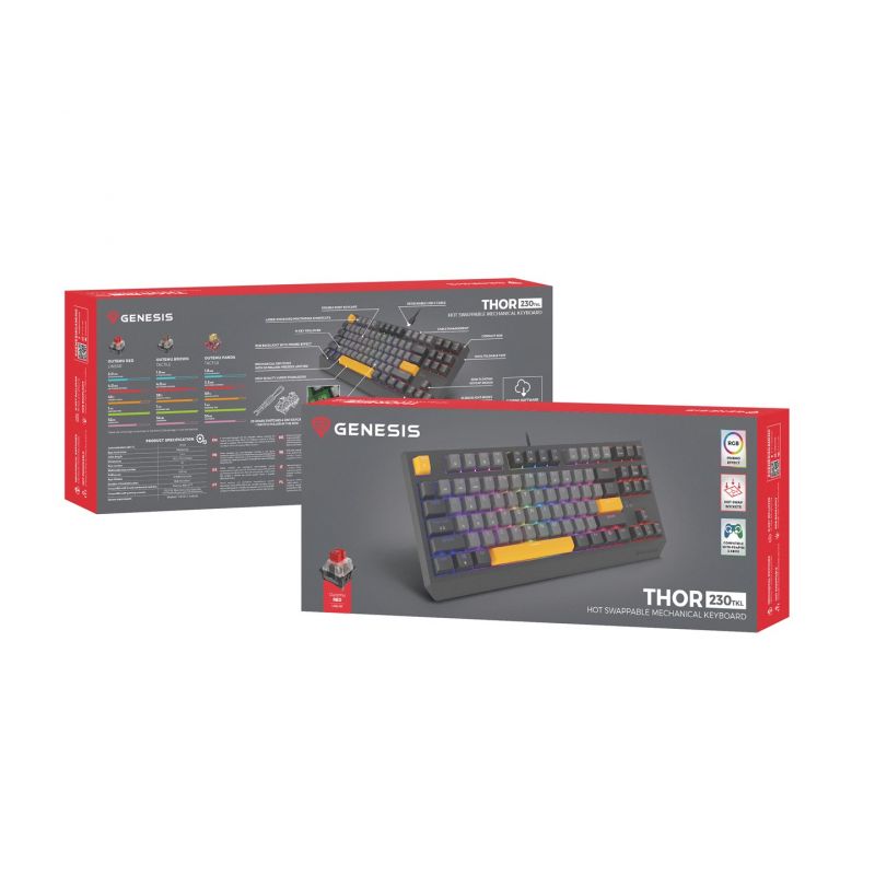 GENESIS Thor 230 TKL Gaming Keyboard USB + RF Wireless + Bluetooth QWERTY Black, Gray, Orange