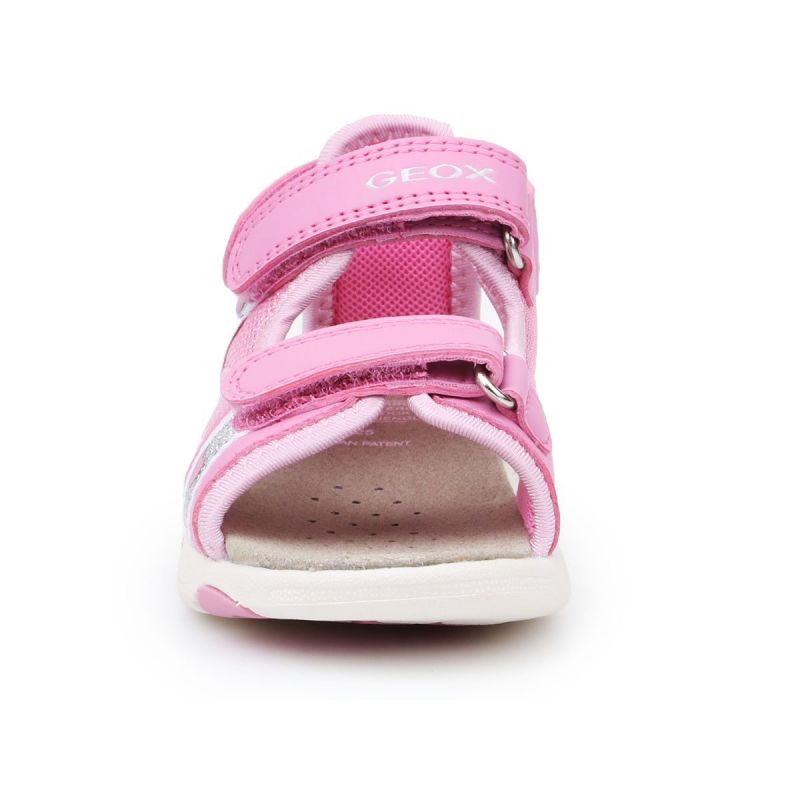 Children's sandals by GEOX. Water-resistant, the upper, lining, and insole are made of hydrophobic materials. They also feature an antibacterial footbed.