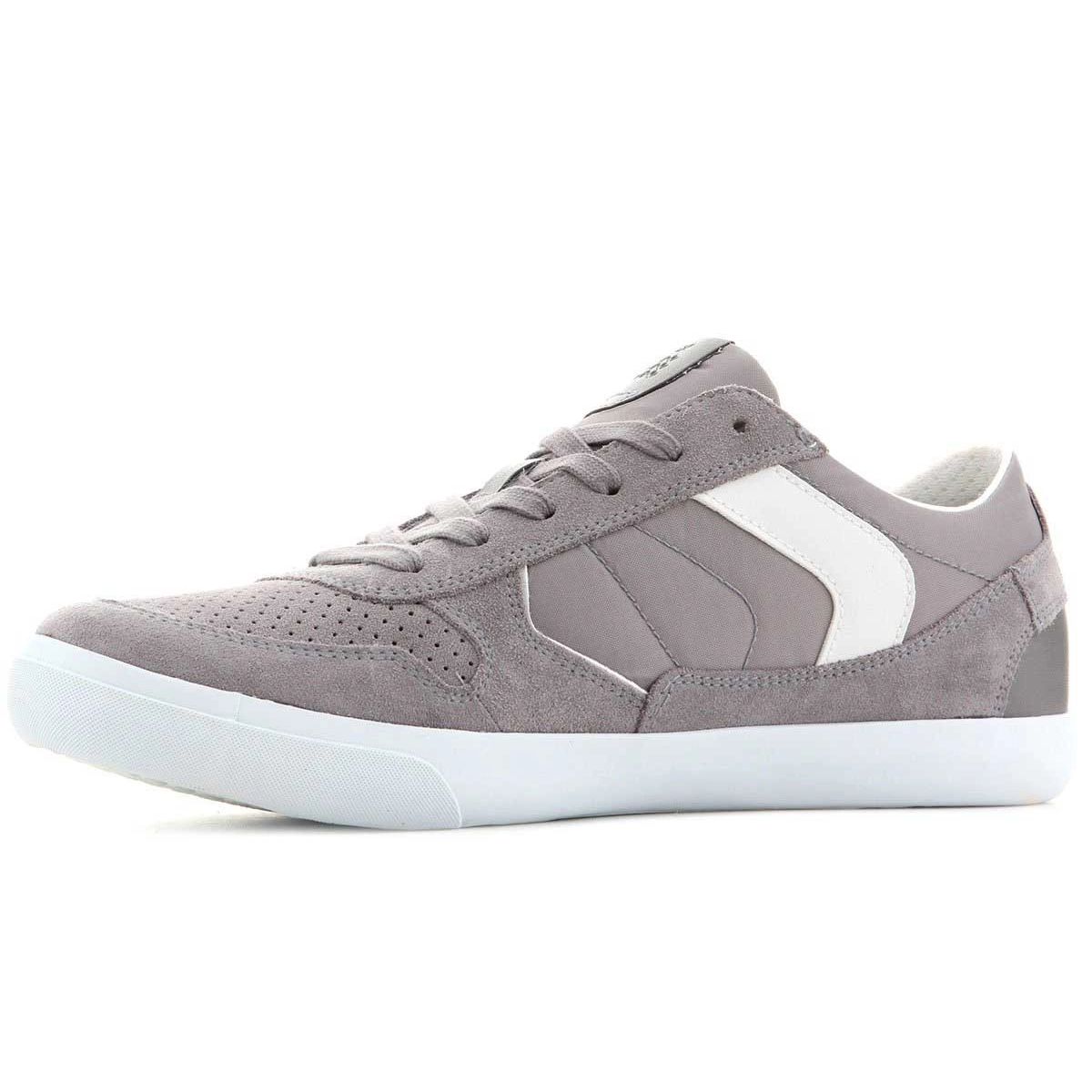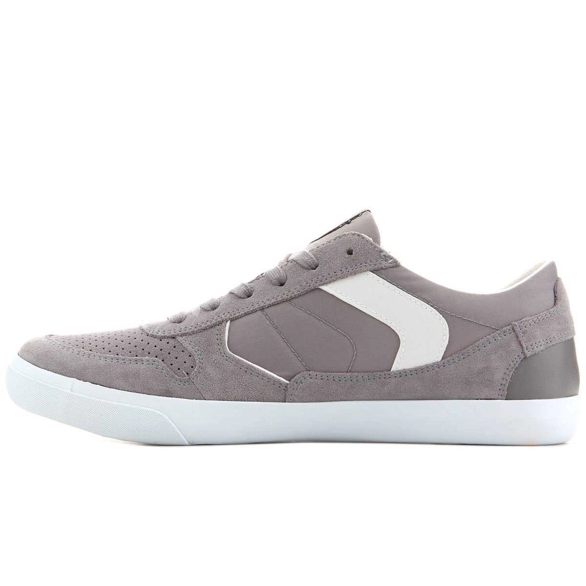 This shoe combines sporty style with urban elegance. The gray upper is made from a combination of suede leather and textile. Contrasting white side panels and a white sole enhance the overall look of the shoe. In addition to traditional lacing, a zipper is located on the side of the upper. Meticulous craftsmanship is characterized by meticulous attention to detail. A sturdy sole with a snake-like tread.