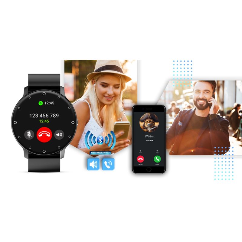 After pairing the smartwatch with your smartphone, you can easily answer and make phone calls. The built-in speaker and microphone allow you to talk without having to take out your mobile phone. While you're driving, you can't talk on the phone, but you can talk through the smartwatch. Driving while talking on the phone can result in a hefty fine and penalty points. Owning this model is much cheaper than a fine, especially if you enjoy talking. Additionally, this model has a phone book and a digital keyboard, allowing you to dial the number you want to call from your smartwatch. This smartwatch can be connected to your smartphone. It's compatible with Android 5.0 and later and iOS 9.0 and later. This means the smartwatch will connect to all phones running Android and iOS.