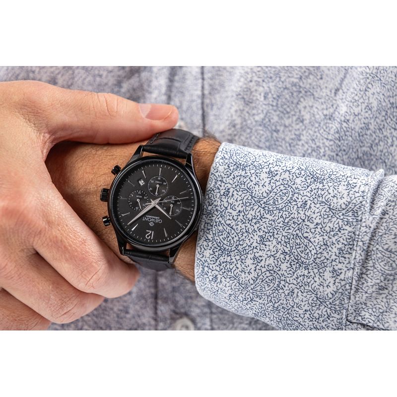 The Giewont GW6310-A1 men's watch is a model designed for men who expect a distinctive character, reliable construction, and functionality that's ready to meet the demands of everyday life. Its dial, with its precise arrangement of chronograph subdials, presents a dynamic, legible design that emphasizes the watch's modern and slightly sporty profile despite its classic design. Each element is arranged for intuitive reading and aesthetic harmony, creating the impression of a perfectly designed timepiece.