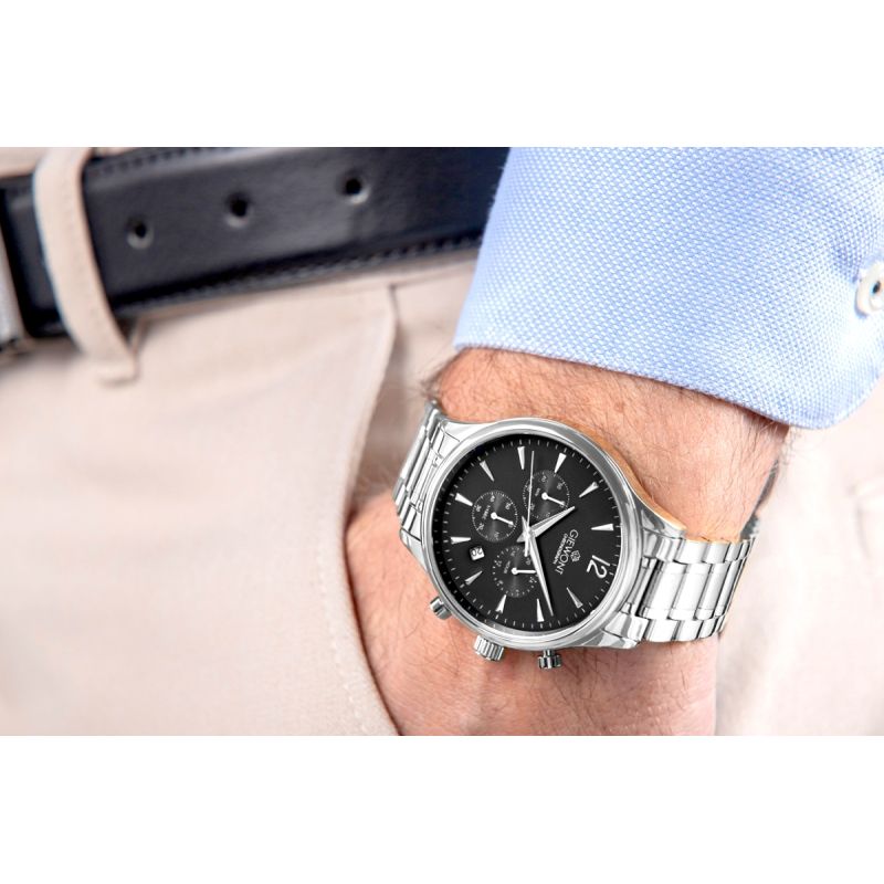 The Giewont GW6310-B2 men's watch is a model designed for men who expect a distinctive character, reliable construction, and functionality that's ready to meet the demands of everyday life. Its dial, with its precise arrangement of chronograph subdials, presents a dynamic, legible design that emphasizes the watch's modern and slightly sporty profile despite its classic design. Each element is arranged for intuitive reading and aesthetic harmony, giving the watch the impression of a perfectly designed timepiece.