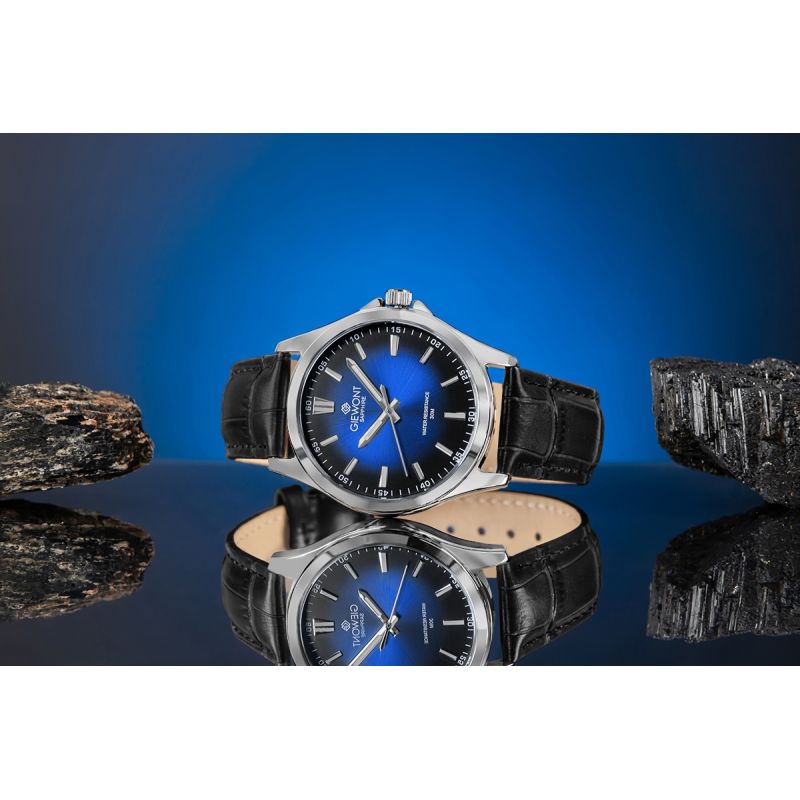 The Giewont ELEGANCE men's watch is the perfect embodiment of class, craftsmanship, and conscious style, created for the man who expects a harmony between timeless aesthetics and the utmost presence in his accessories. Its deep, navy blue dial, with its intense color and luster, attracts attention and gives the timepiece a unique, noble character. The sapphire crystal provides not only spectacular clarity but also impressive scratch resistance, ensuring the watch maintains its prestigious appearance for years to come.