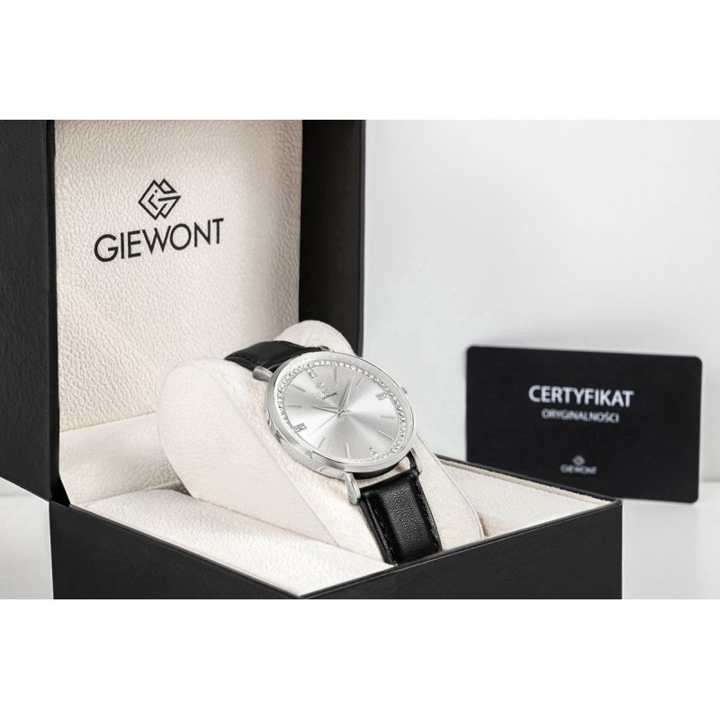 The Giewont GW5390-A1 women's watch was designed as a subtle piece of jewelry that discreetly emphasizes style and natural elegance. The harmonious dial composition, based on simplicity and lightness, creates a calm, yet exceptionally refined look. This timepiece doesn't dominate the styling, but becomes a refined complement.