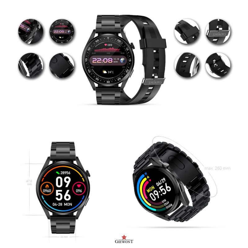 Whether you're cycling, running, or just working or relaxing, your Giewont Vertex GW450 smartwatch will become your personal assistant taking care of your health every day.