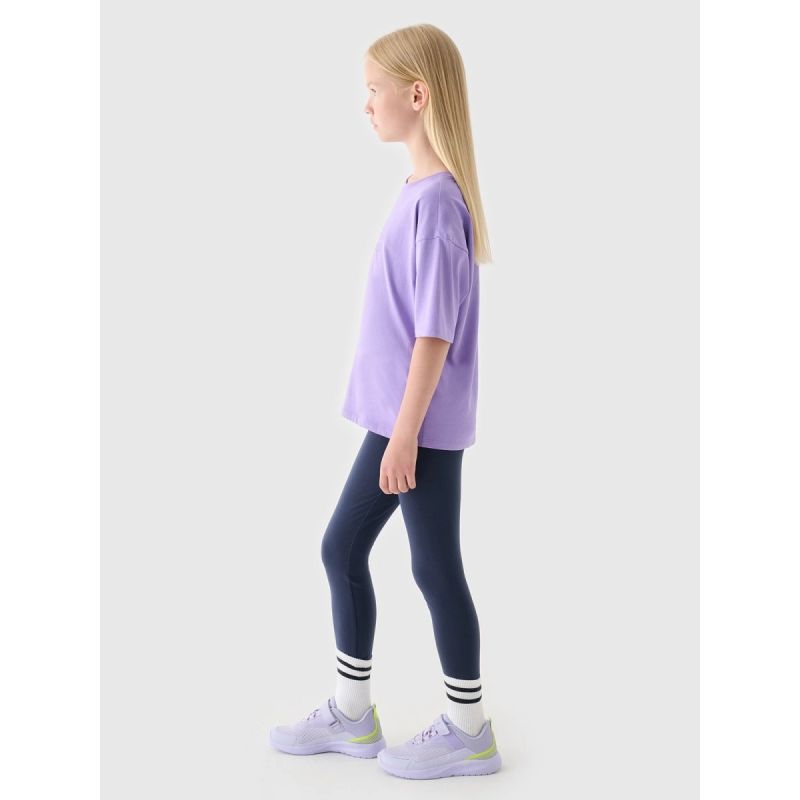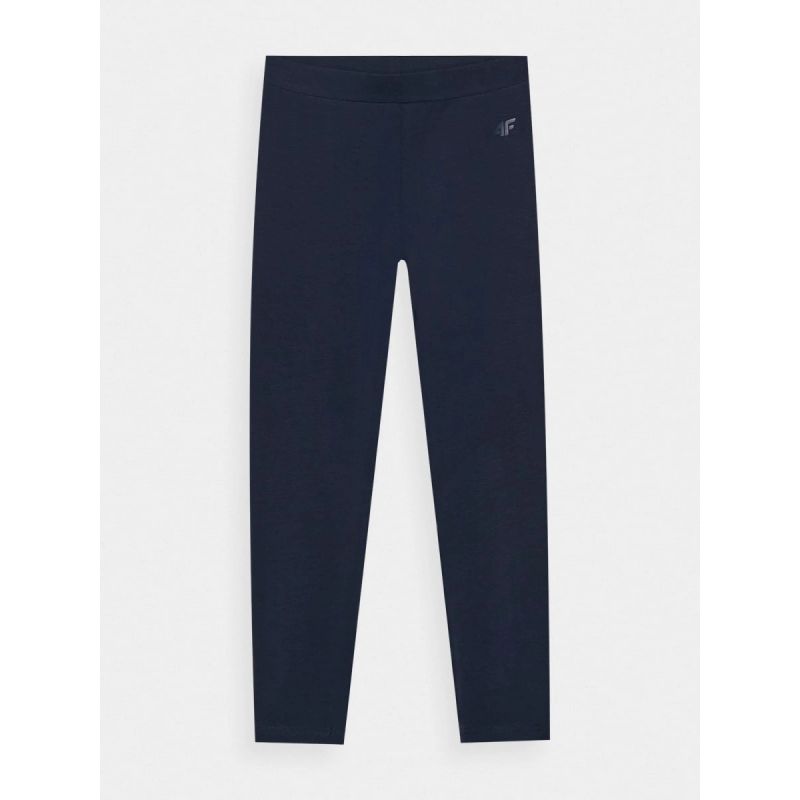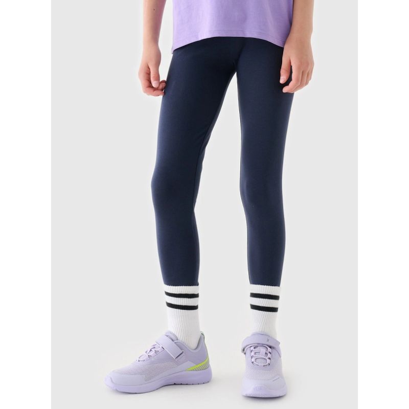 4F girls' cotton leggings are a versatile wardrobe staple, perfect for both everyday and athletic wear. The slim fit hugs the figure, ensuring comfort and freedom of movement. The high waist stays in place and offers enhanced coverage, while the long legs, which fall below the ankle, emphasize the classic, functional silhouette. Soft single jersey fabric ensures all-day comfort.