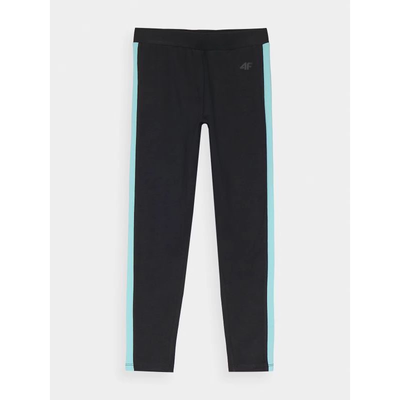 4F girls' leggings are made of 95% cotton , making them soft, durable, and pleasant to the touch. Thanks to the addition of 5% elastane, they are stretchy and fit comfortably. No pockets. Contrasting stripes run along the legs. An elastic waistband ensures a snug fit.