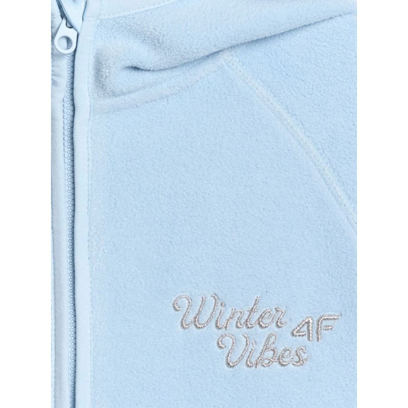 Girls' 4F fleece is a comfortable choice for colder days , perfect for both winter fun and everyday outings . 4FWarm technology helps maintain thermal comfort in low temperatures, while the medium-weight fleece provides softness and pleasant warmth without feeling heavy.