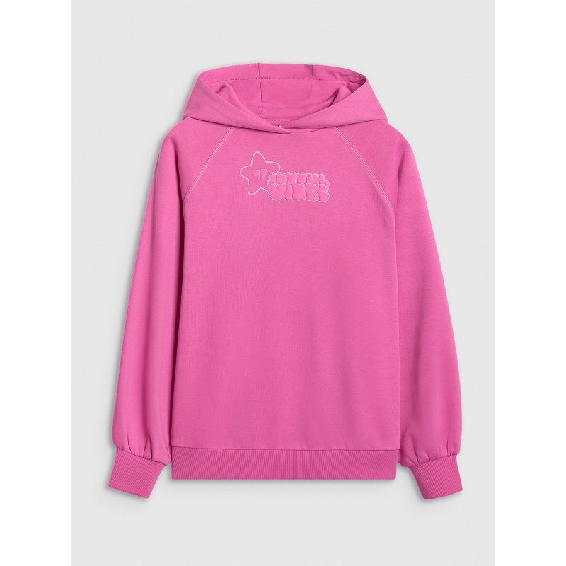 The 4F girls' hooded sweatshirt is a versatile choice for everyday styling —both casual and sporty . The oversized cut drapes loosely around the body, allowing for complete freedom of movement , while the standard hip-length ensures a comfortable and versatile fit.
