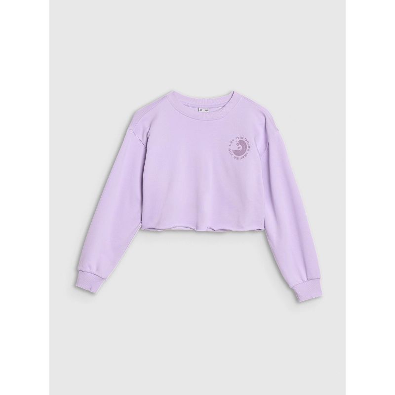 This gray 4F girls' sweatshirt is a timeless wardrobe staple that works well with both sporty and casual outfits . The neutral color makes it easy to pair with colorful accessories and patterned leggings, creating versatile everyday looks.