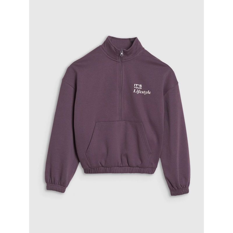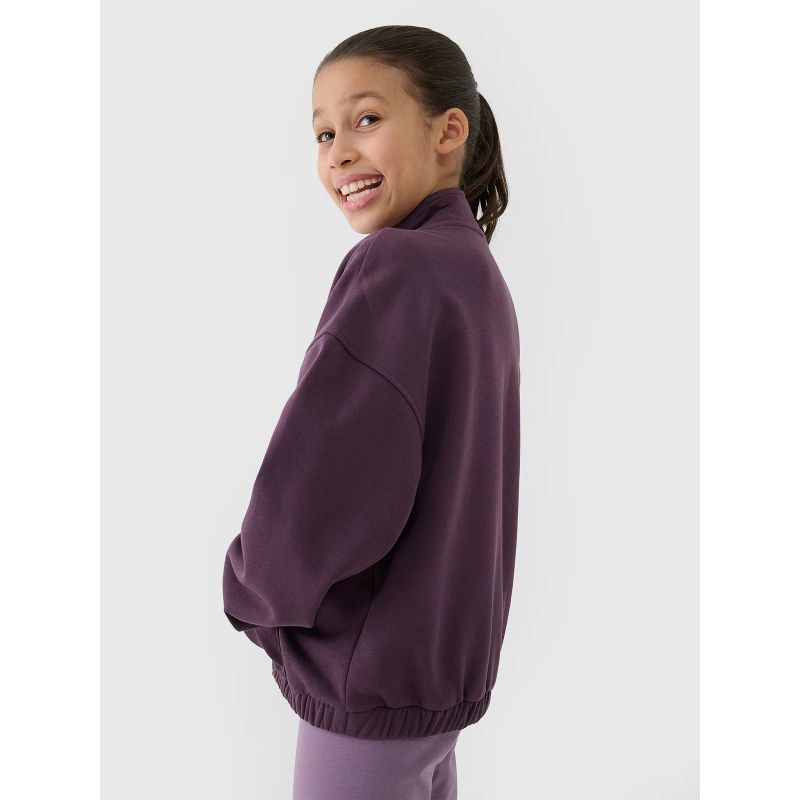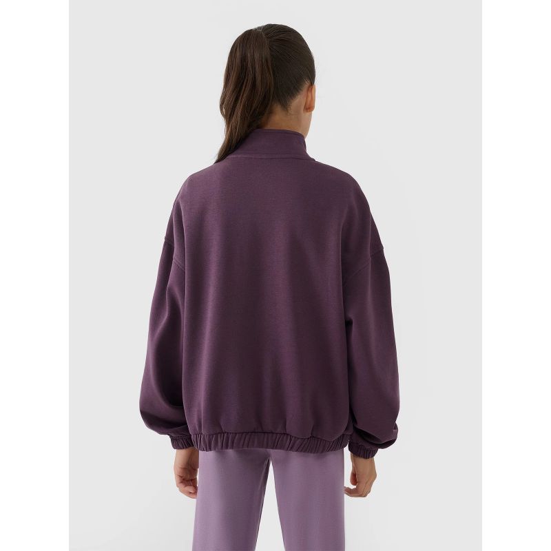 This girls' sweatshirt without a hood is a perfect choice for cooler days . Thanks to its oversized cut , soft cotton , and brushed fabric, it combines comfort with a fashionable look. It can be easily paired with a variety of outfits—from casual to more sporty.