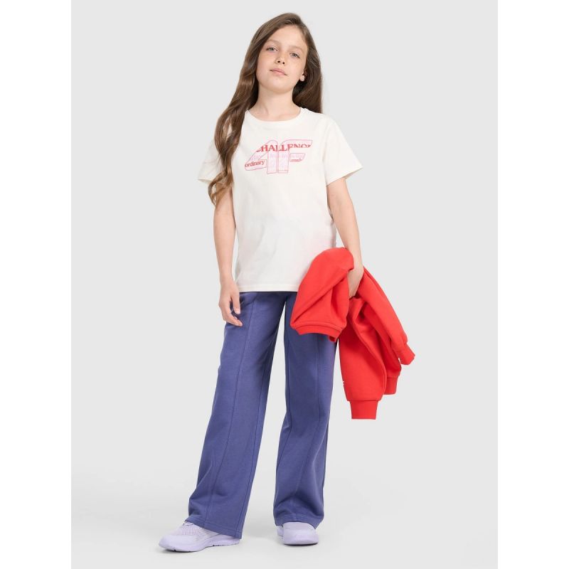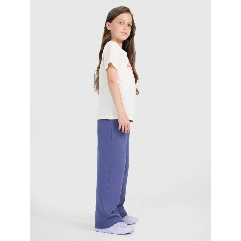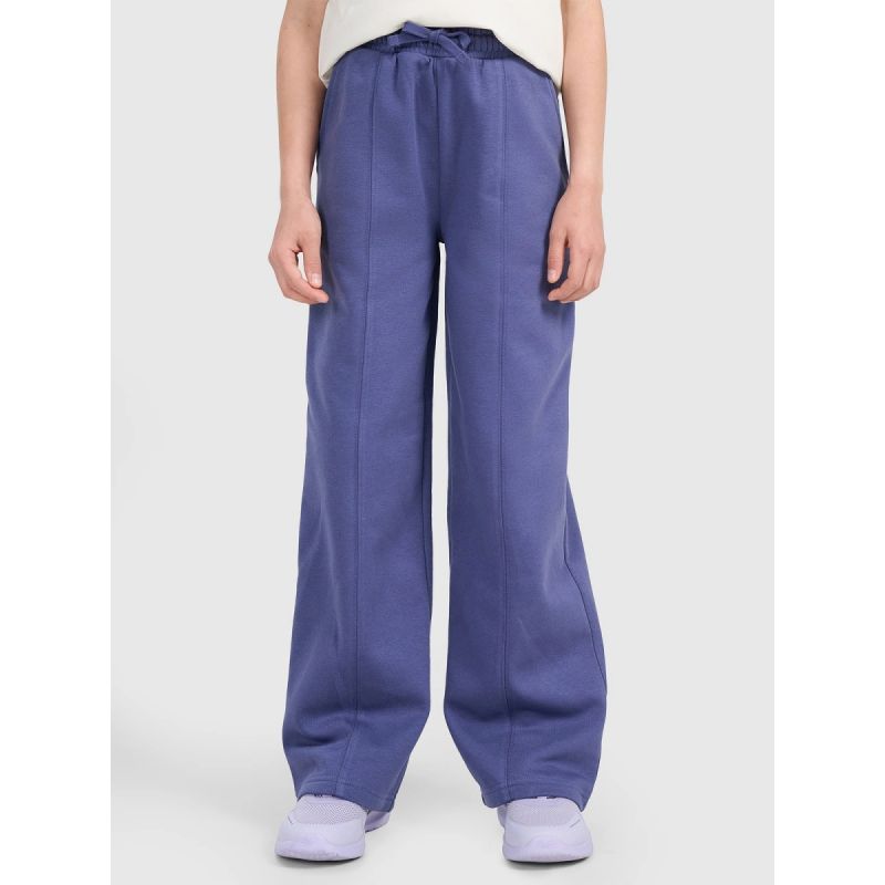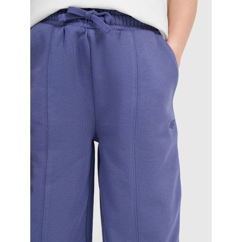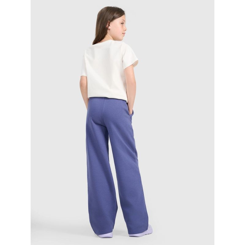 These 4F youth sweatpants are the perfect choice for girls who value comfort and modern style. The oversized cut allows for complete freedom of movement, while the straight, wide legs with stitching add a fashionable touch and visually elongate the figure. Single jersey fabric with a one-sided brushed interior guarantees softness and added warmth, making them perfect for cooler days. With a medium weight of 280 gsm , they are pleasantly thick yet still breathable. Made of 80% cotton and 20% polyester, they ensure durability, comfort, and resistance to wear. An elastic waistband with a drawstring allows for a personalized fit, and two open pockets add functionality. These are the perfect everyday pants—for school, a walk, or casual activities.