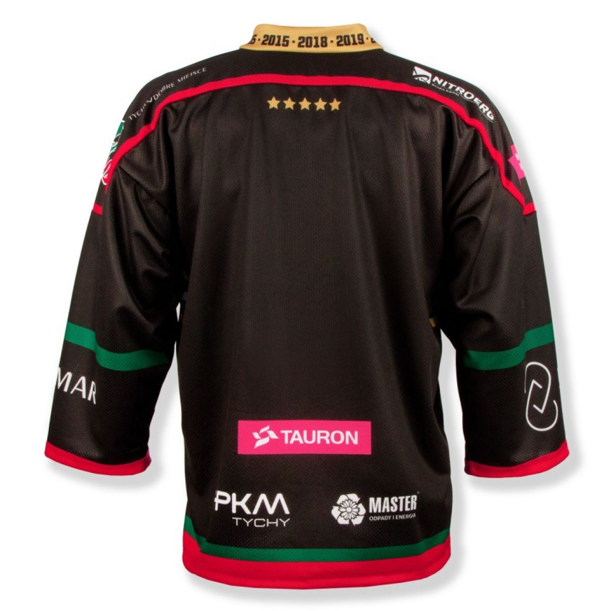 GKS Tychy 24/25 Game Jersey Replica. The official GKS Tychy hockey jersey for the 2024/2025 season is a must-have for every fan. Key Features: Colors: The jersey comes in classic white or black, giving it an elegant and professional look. Logo: The front of the jersey features a large, triangular GKS Tychy logo, featuring the club's colors and a gold border, emphasizing the club's identity. Gold and Black Accents: The gold detail on the collar of the black jersey adds prestige and unique style. The white jersey features this accent in black. Sleeves: The sleeves feature green and red stripes, symbolizing the club's colors. Sponsor Logos: Sponsor logos from Tyskie and other local companies are featured on the lower hem and sleeves, adding authenticity. This is an excellent choice for loyal GKS Tychy fans who want to support their team in their official game kit. If you'd like to make your jersey even more unique, you can personalize it by adding your name, surname, and player number. This service is available for an additional fee of PLN 45. Simply add the "A3 Clothing Personalization" product to your cart and enter the text and number in the order notes. The price for a personalized jersey is PLN 274. The jersey is available in Junior and Senior sizes, so every fan can find the perfect fit. Let your GKS Tychy 24/25 jersey become the hallmark of a true fan! Because personalized jerseys are an additional service, they are custom-made for the customer, and are non-returnable, please consider your design carefully before placing your sublimation order.