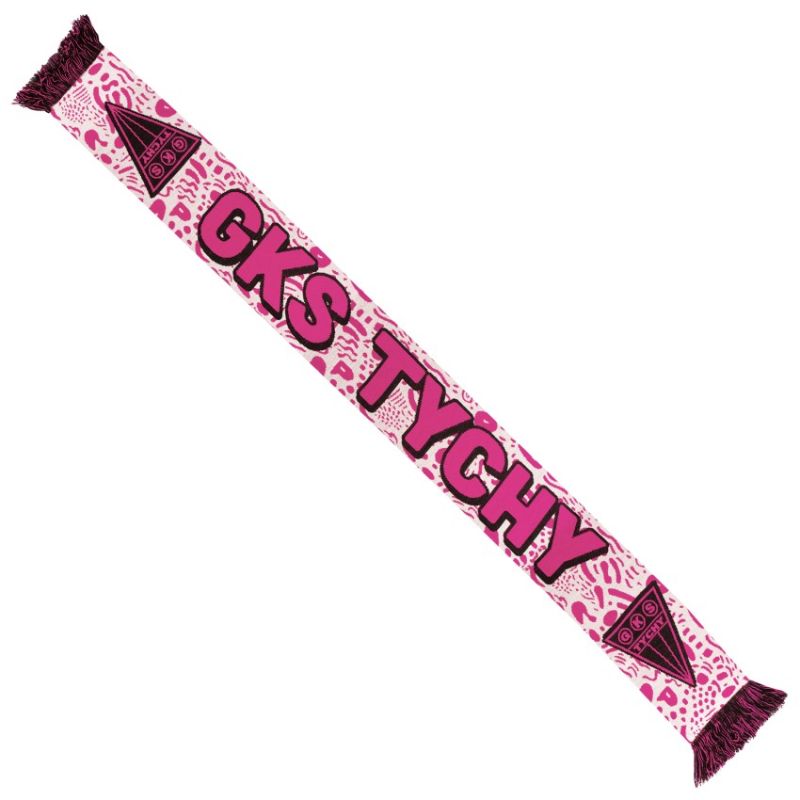GKS Tychy Scarf – PINK. Stand out in the stands with the club's bold colors. The GKS Tychy PINK scarf is a unique option for fans who like to stand out from the crowd and emphasize their loyalty to the club in a modern way. The intense pink color scheme combined with contrasting details and a large "GKS TYCHY" lettering makes the scarf immediately eye-catching. The dynamic, sports-inspired pattern adds character, while the soft material ensures comfort on cooler days. Key features: Unique color scheme: The bold pink design allows you to stand out from the crowd and adds a fresh touch to your fan style. Large club lettering: The legible "GKS TYCHY" clearly emphasizes your loyalty to the team. Modern design: Graphic details give the scarf an energetic, sporty look. Soft-touch material: Provides warmth and comfort both during matches and everyday wear. The GKS Tychy – PINK scarf is a stylish and distinctive accessory that will perfectly complement any true fan's collection.
