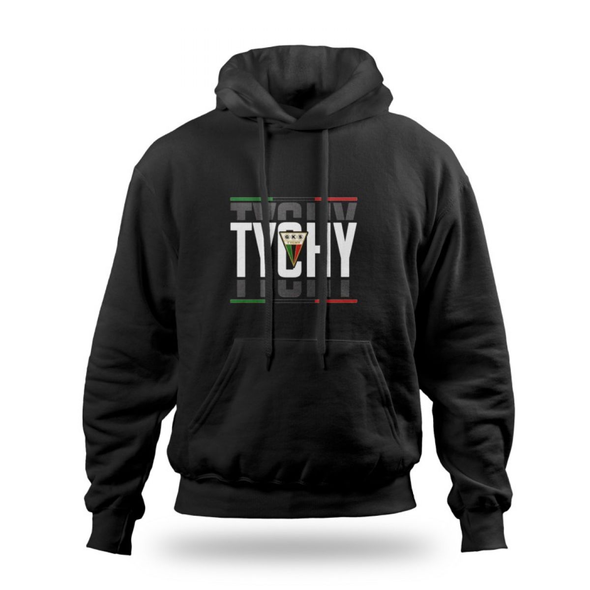The GKS Tychy Shadow Hoodie is a stylish and functional hoodie, created with the club's fans in mind. Its classic black design and high-quality materials make it perfect for both the stands and everyday wear. Key features: Unique design: The front features a "TYCHY" inscription with a faded effect and the GKS Tychy crest, surrounded by subtle stripes in the club's colors, emphasizing your fan affiliation. High-quality material: Made from a blend of 65% polyester and 35% cotton, the hoodie ensures durability, comfort, and resistance to everyday wear. Adequate thermal insulation: Weighing 290 g/m², it guarantees warmth on colder days while maintaining comfort. The GKS Tychy "Shadow" Hoodie is the perfect choice for any fan who values comfort and wants to proudly represent their club.