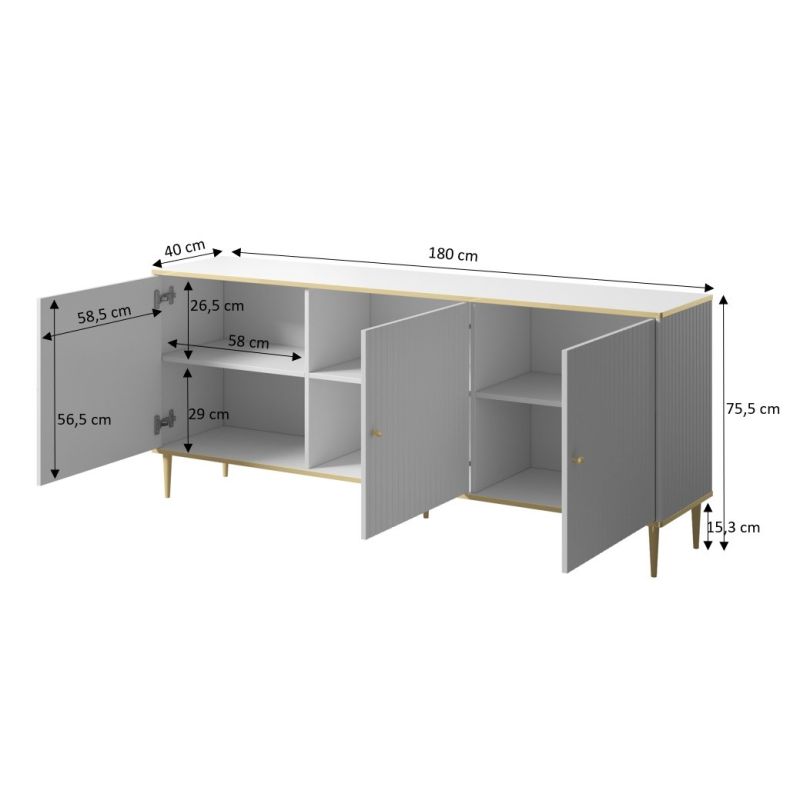 GLAMOUR Chest of Drawers 180x40x75.5 Matte Black + Gold