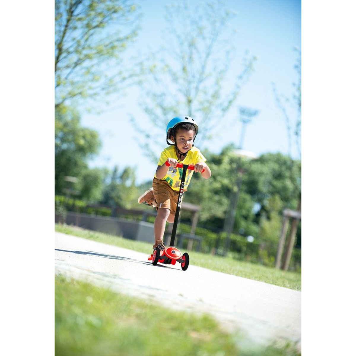 - Globber three-wheeled scooters designed for small children.