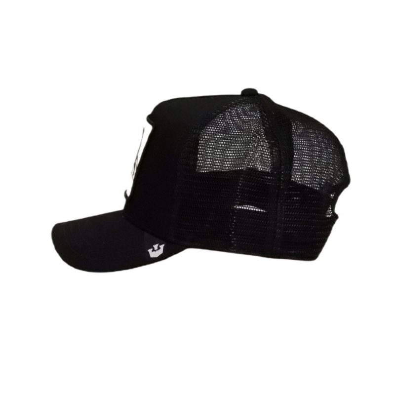Black trucker cap with a Goorin Bros jacquard label on the visor.