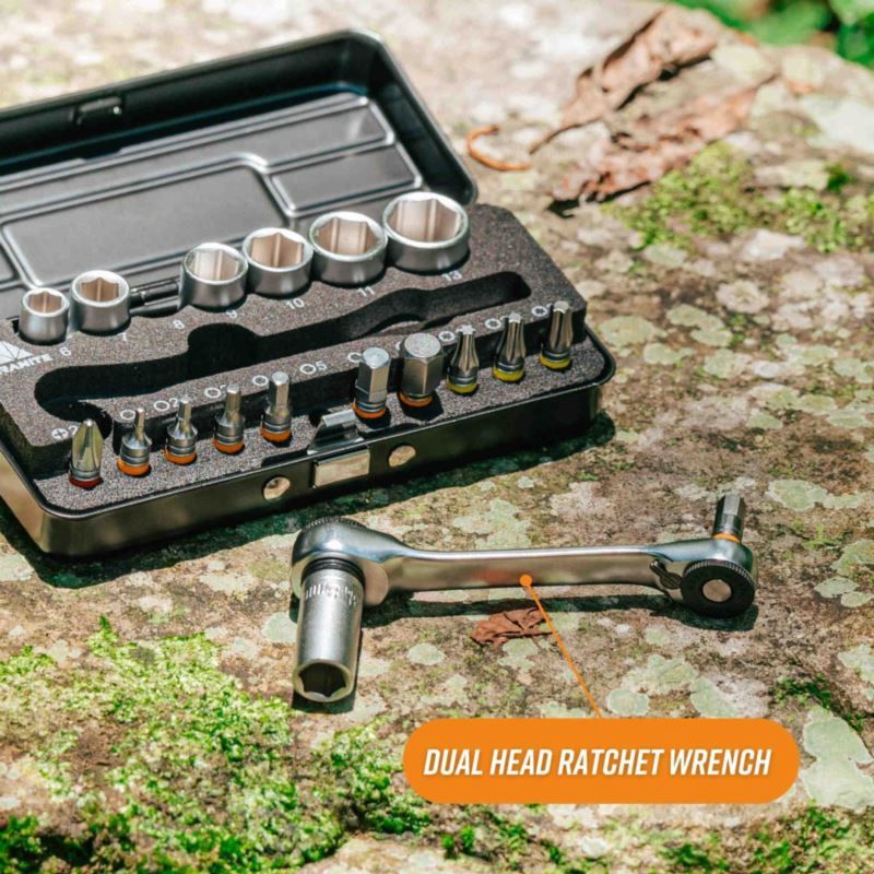 Universal Ratchet Wrench: Features a double head for hex bits and sockets with a reversible mechanism for quick direction changes.