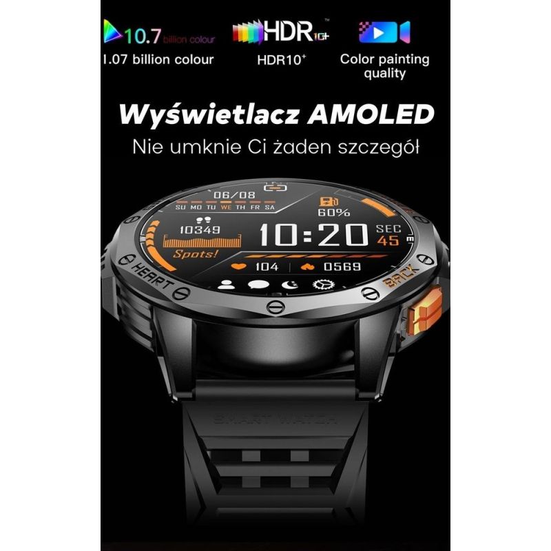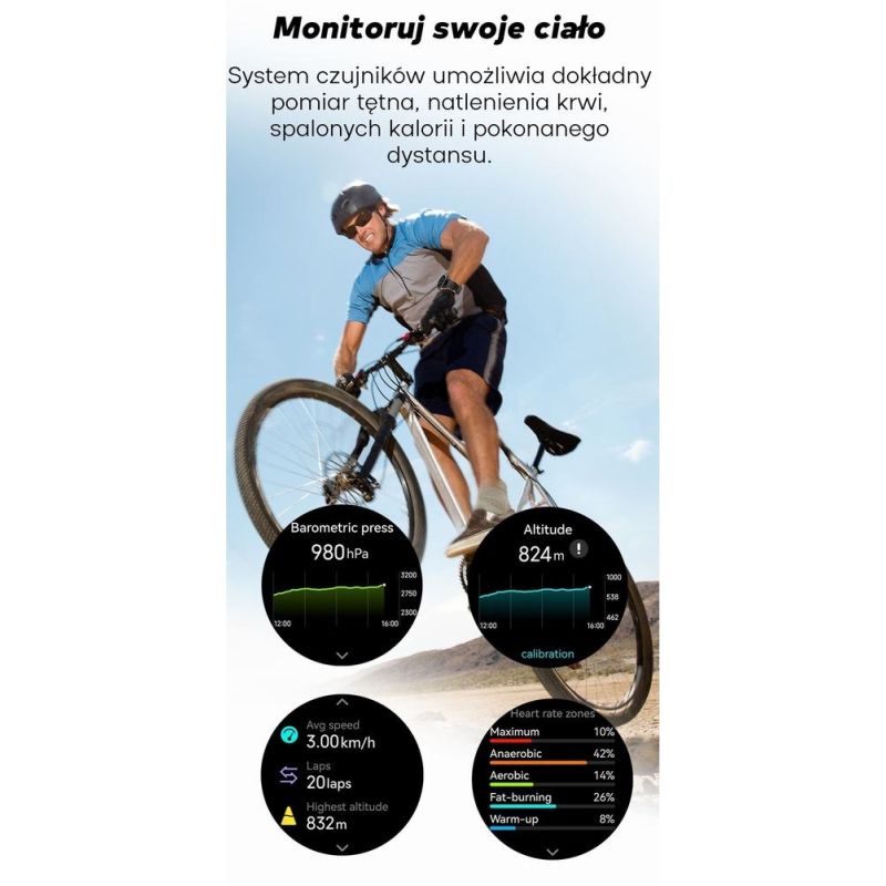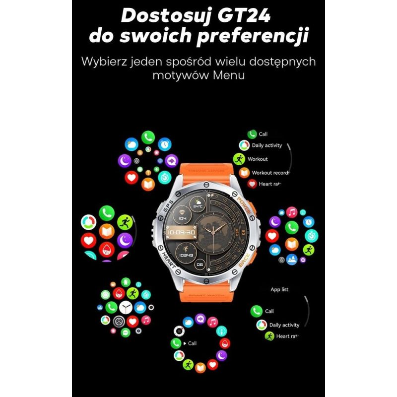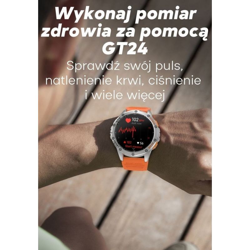 Designed for those who refuse to compromise, the GRAVITY GT24 is a smartwatch that keeps pace with you. A 1.43" HD AMOLED full touchscreen with a 466x466 px resolution guarantees flawless sharpness and excellent readability even in bright sunlight. BCM47755 GPS, a barometric altimeter, compass, and flashlight mean the watch not only sets your direction but gives you complete control over your surroundings – whether you're conquering peaks or conquering the urban jungle. Thanks to Bluetooth 5.3, your phone can stay in your pocket – answer and make calls straight from your wrist, while the built-in microphone and speaker ensure complete conversational freedom. Advanced health monitoring monitors your fitness and recovery, while a multitude of sports modes guarantee precise training data, helping you achieve your goals. IP68 waterproofing ensures resistance to conditions that would be a challenge for others.