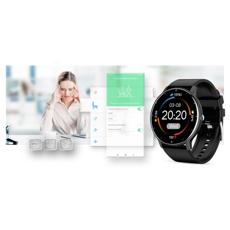 This smartwatch is perfect for active people who spend their free time playing sports and maintaining a healthy lifestyle. This model has a variety of sports modes: basketball, cycling, running, walking, jumping, soccer, and badminton, which allow you to easily monitor your training or sports activities. It allows you to plan and monitor time, distance, calorie burn, and training results.