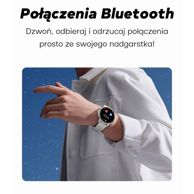 In the daily rush between meetings, training, and moments for yourself, functionality, elegance, and reliability are key – and that's exactly what the GRAVITY GT12 smartwatch offers. The full 1.43" AMOLED touchscreen display with a high resolution of 466x466 pixels impresses with its vibrant colors and perfect sharpness, highlighting a modern design that complements both sporty and elegant outfits. Thanks to Bluetooth 5.3 and the call answering and making function, your phone can easily be left in your bag – the built-in microphone and speaker ensure complete freedom of conversation. A voice assistant makes operation easy, while advanced health monitoring – a heart rate monitor, accelerometer, and sleep analysis – takes care of your fitness and recovery. The lightweight, stylish alloy case (33.5g!) combined with a durable silicone strap or an elegant mesh bracelet allows you to match the smartwatch to any occasion. IP68 water resistance guarantees resistance to rain and an active lifestyle, while the powerful 250 mAh battery provides up to 6 days of operation on a single charge.